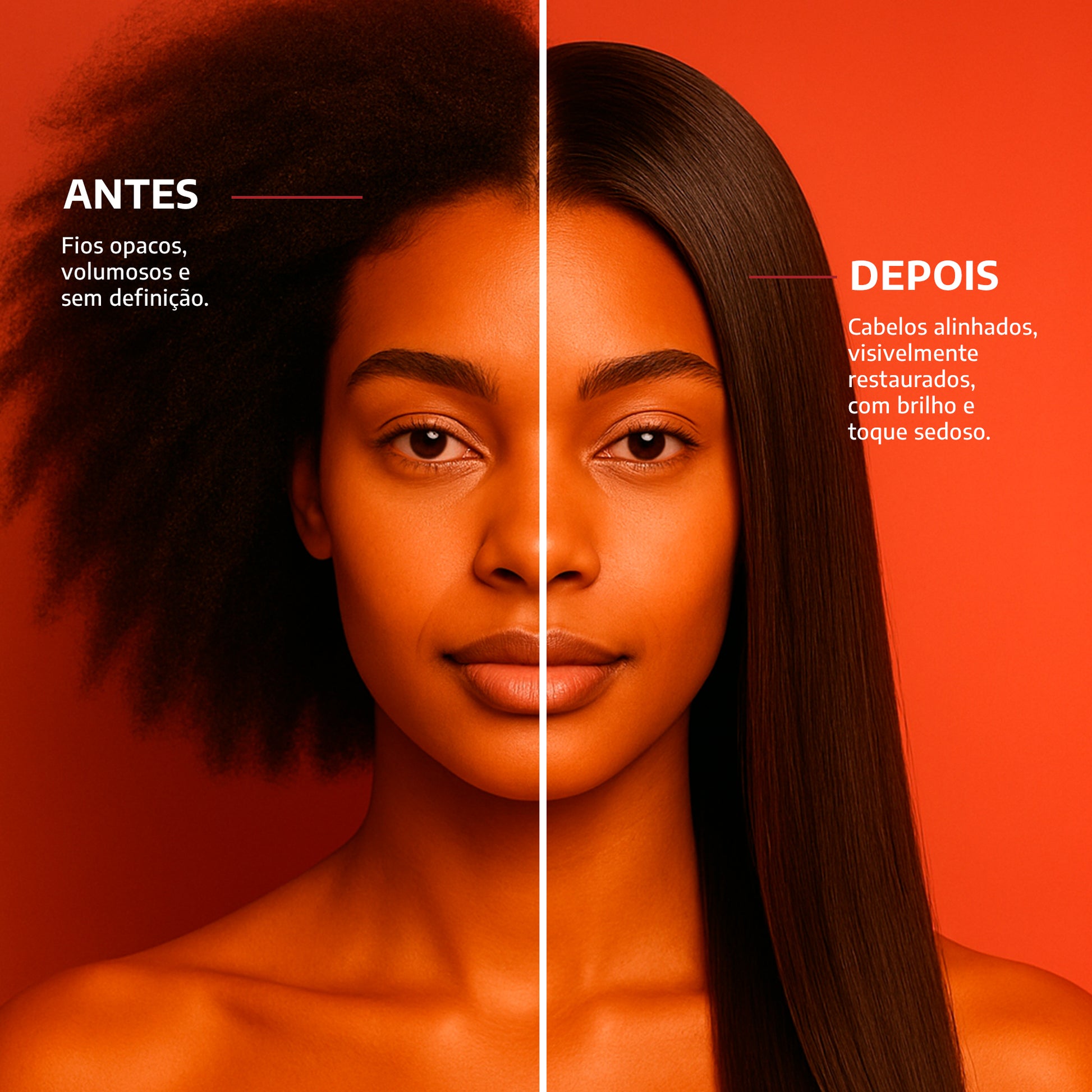 Redução de Volume: Diminui significativamente o volume dos cabelos, proporcionando fios mais alinhados e controlados.