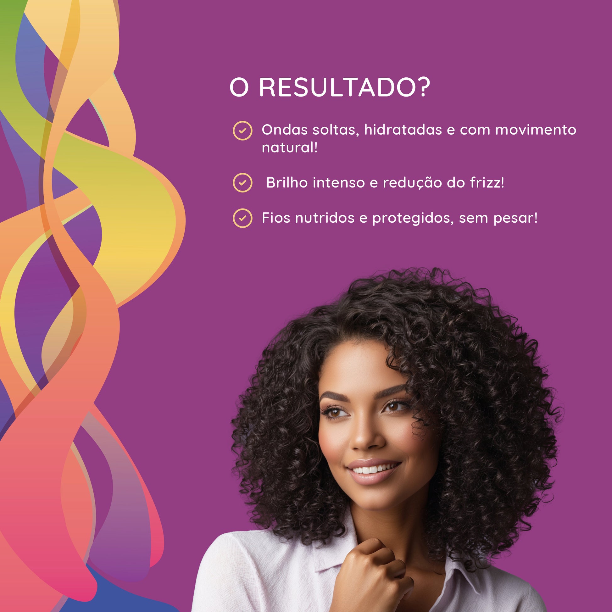 Hidratação e Nutrição: Hidrata profundamente os fios, garantindo cachos mais suaves e com brilho natural.
