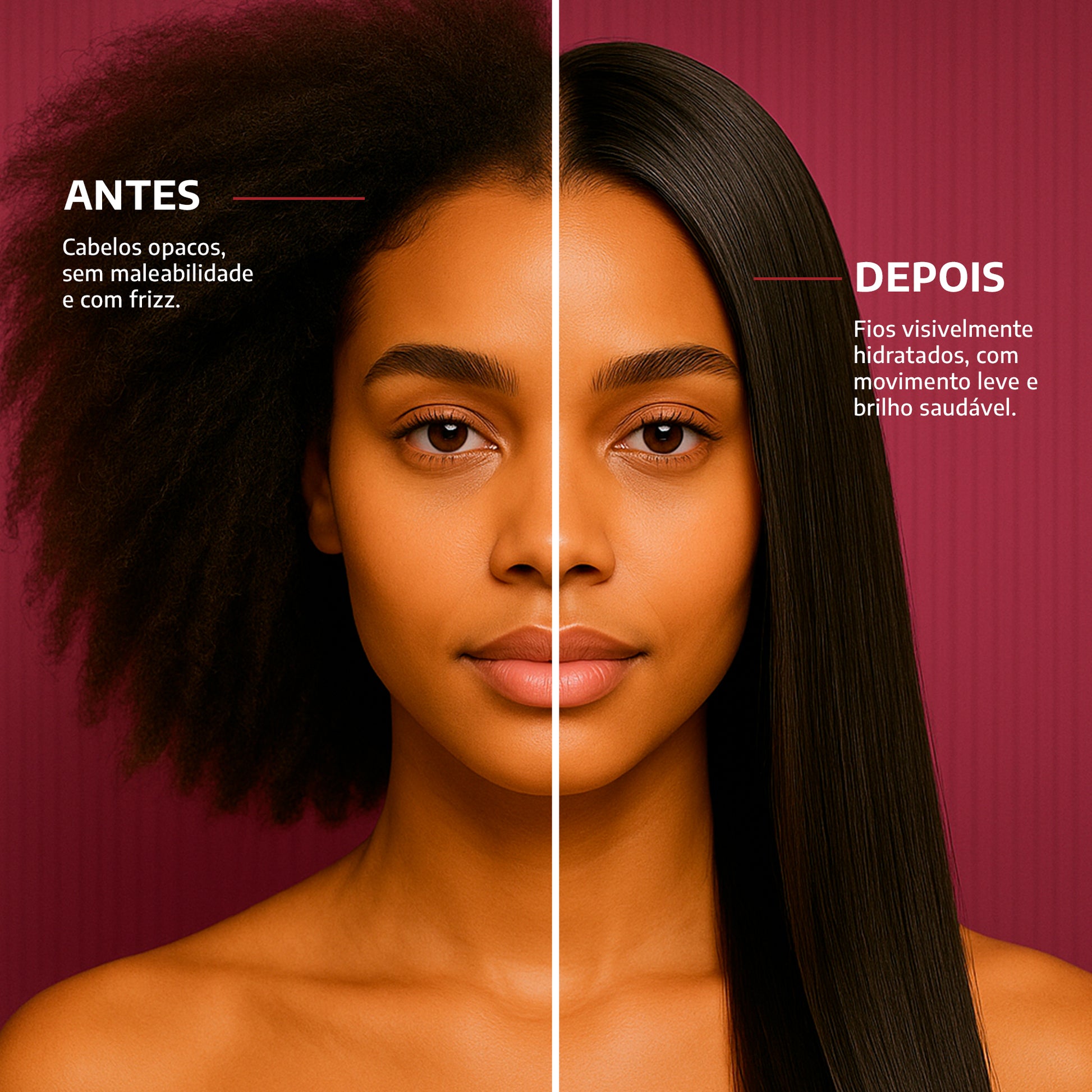 Brilho e Maciez: Devolve o brilho natural e a suavidade aos cabelos, deixando-os sedosos e maleáveis.