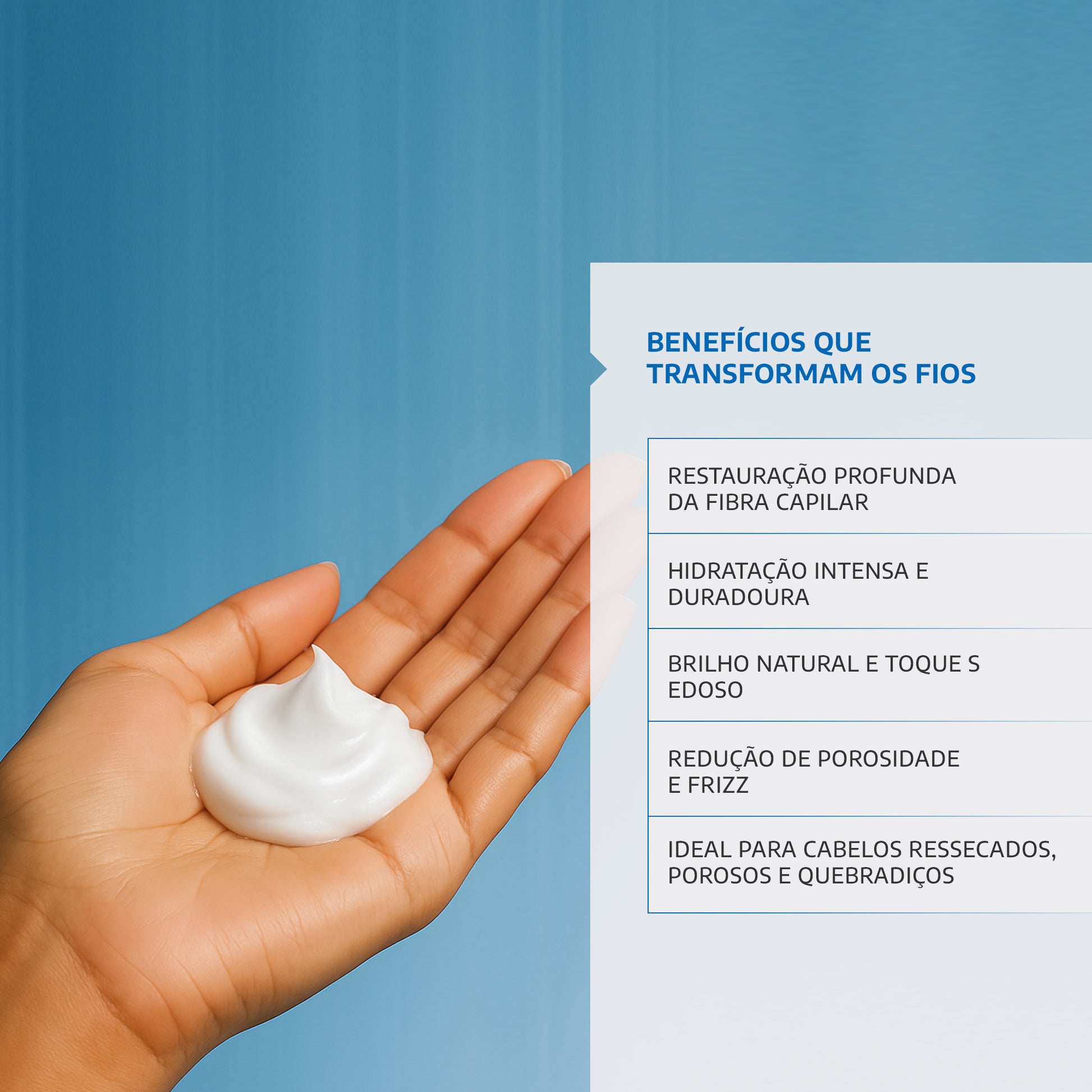 Hidratação e Nutrição: Hidrata e nutre profundamente, devolvendo a saúde e vitalidade aos cabelos.