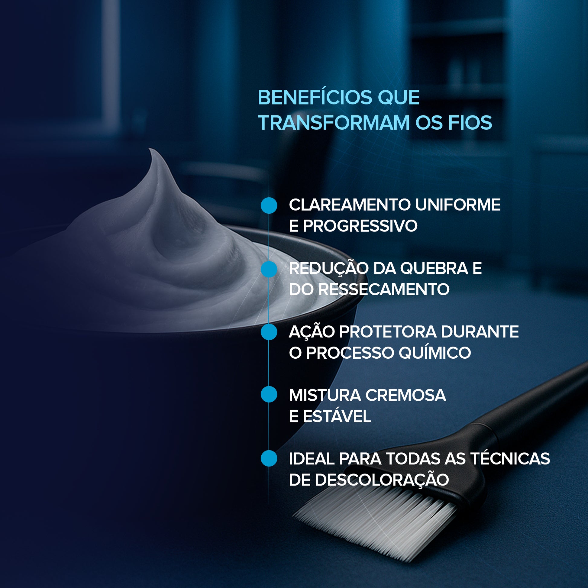Clareamento Intenso: Clareia até 9 tons de maneira eficaz e segura, ideal para descolorações completas ou mechas.
